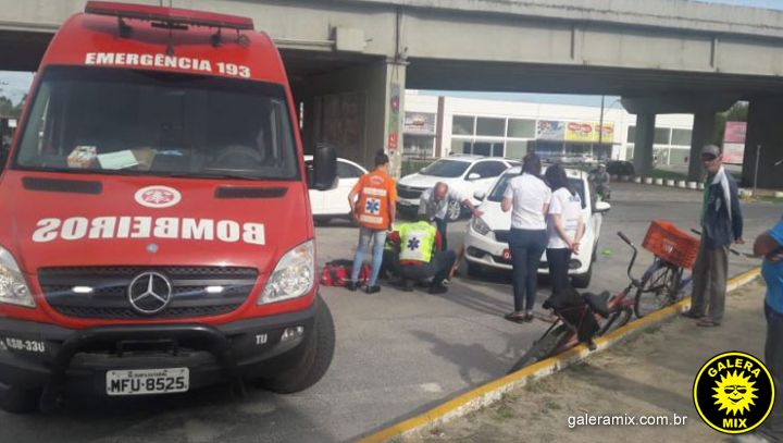 O homem trafegava de bicicleta e foi atingido por um automóvel na principal via de acesso da cidade. Com o impacto da batida a vítima ficou desacordado por alguns minutos após bater com a cabeça no chão.