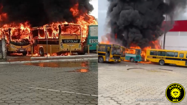 Não há registro de feridos até o momento. A Defesa Civil está no local e explosões estão sendo registradas nos pneus dos veículos. O local está sendo interditado e os outros ônibus estão sendo retirados.