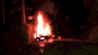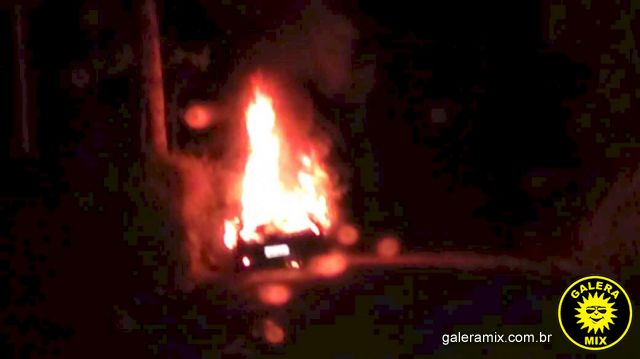 Durante a noite desta sexta-feira (18), um automóvel de passeio foi completamente destruído após pegar fogo.