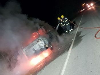 Incêndio em veículo mobiliza bombeiros em Canelinha