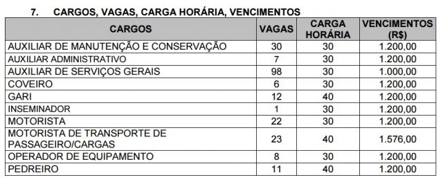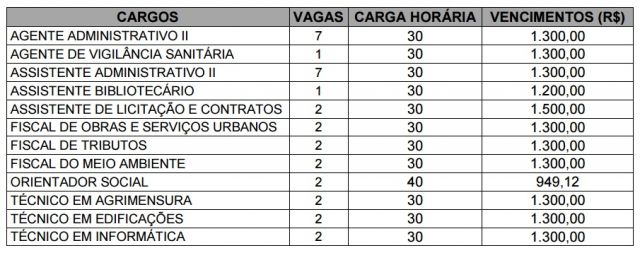 Confira a quantidade de vagas, cargos e os respectivos salários (Clique nas imagens para ampliá-las):