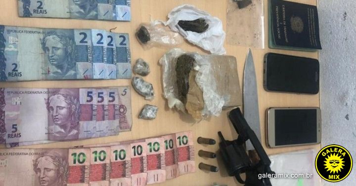F. J. B., 28 anos, fumava maconha na frente da casa quando foi abordado pela PM. Com ele, os policiais localizaram R$ 792. Já no imóvel foi localizado um revólver 38 e munições. Na sala, a PM encontrou droga fracionada e um tablet com 215 gramas de maconha.