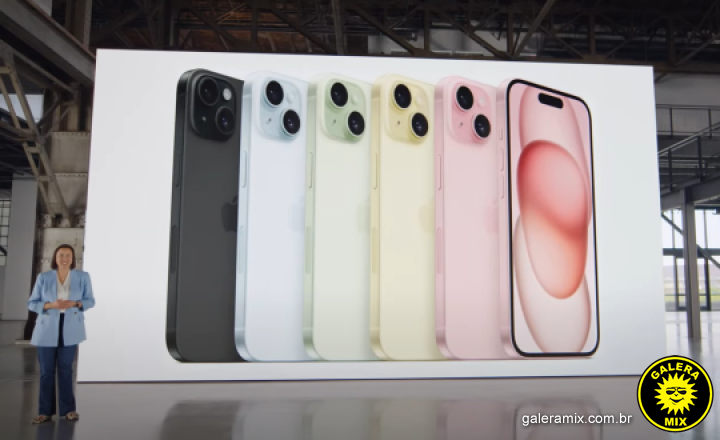 As cores disponíveis para o iPhone 15 são: preto, verde, azul, rosa e amarelo. O iPhone Pro terá variações de cores metálicas, como azul e prata. Há diferença também entre os tamanhos de tela diferentes entre os modelos da linha 15. O iPhone 15 e o 15 Pro terão telas de 6,1 polegadas. Já o Plus e o Pro Max, terão telas maiores com 6,7 polegadas cada.