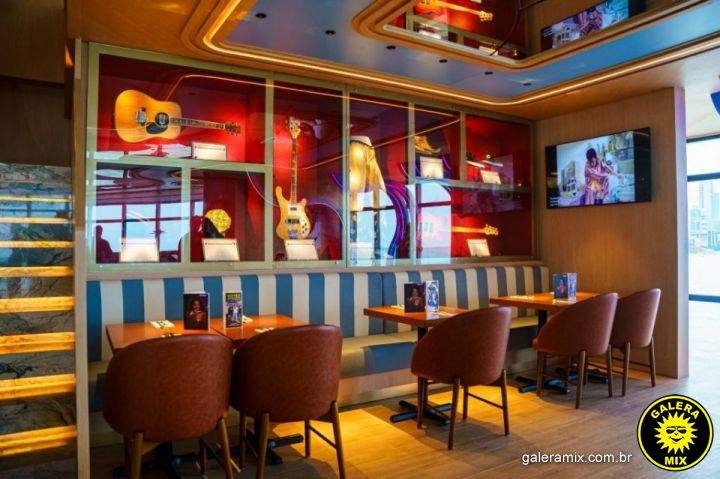 Além da experiência gastronômica, o espaço abriga uma coleção especial de memorabilia musical com cerca de 55 itens originais. Entre as peças expostas estão instrumentos e objetos utilizados por artistas como Guns N’ Roses, The Beatles, Elvis Presley, Madonna, Whitney Houston, James Brown e B.B. King, reforçando a proposta do Hard Rock de preservar a história da música.