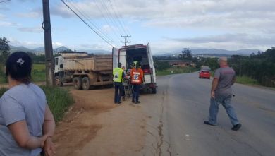 Jovem fica ferido em acidente entre moto e caminhão em Tijucas