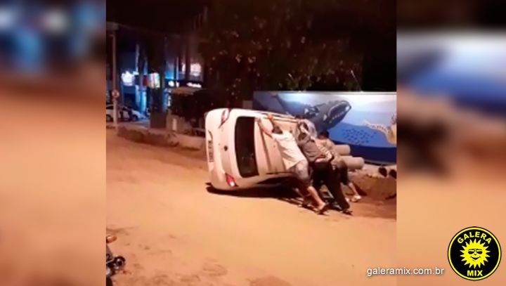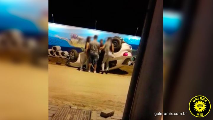 Neste fim de semana um capotamento registrado em Bombinhas, chamou a atenção de populares que passavam pelo local. Uma turma de jovens foi flagrada desvirando o carro após o acidente.