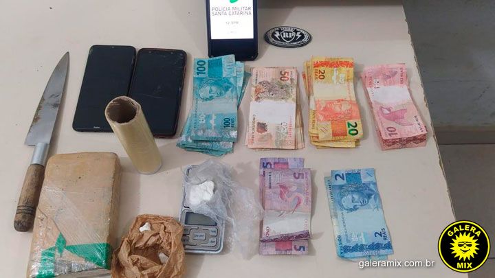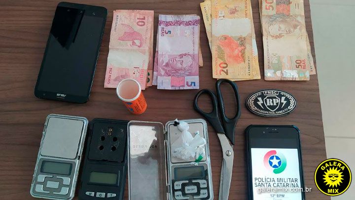 Em uma busca minuciosa, os policiais encontraram porções de maconha e cocaína, uma balança de precisão e uma quantia em dinheiro.