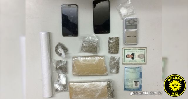 João Vitor Cardozo, 20 anos, foi abordado no momento em que saía de uma residência. Com ele foi encontrado um torrão de maconha de 398 gramas e na casa, mais 639 gramas em torrões e seis gramas de cocaína.