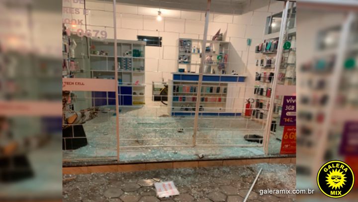 A Polícia Militar foi acionada por volta das 4h35min, para atender a ocorrência. Ao chegar no estabelecimento foi constatado o furto de diversos aparelhos celulares, máquinas para manutenção dos aparelhos e acessórios. O veículo utilizado para invadir a loja foi abandonado no local.