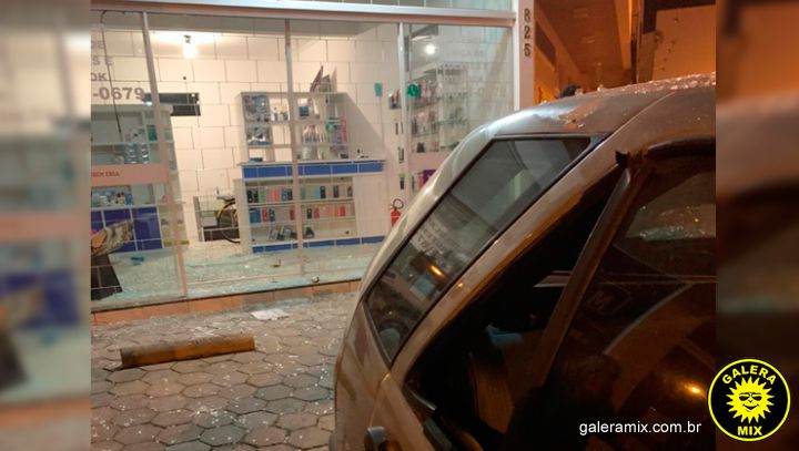 Bandidoss colidiram com um veículo Fiat/Tipo contra uma loja, em Tijucas e roubaram mercadorias. A ação criminosa ocorreu na madrugada desta quarta-feira (24), na rua 13 maio.