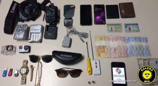 presos pelos policiais. Durante a fuga, para tentar escapar do flagrante, um deles jogou uma sacola na rodovia com objetos oriundos de furtos realizados em Itapema, no litoral Norte. Duas viaturas e motocicletas da PM conseguiram interceptar o veículo mais à frente.