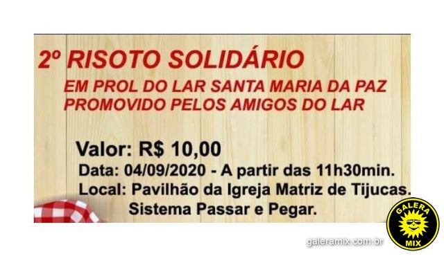 O Lar Santa Maria da Paz de Tijucas iniciou as vendas de cupons para o 2°Risoto Solidário em prol do Lar.
