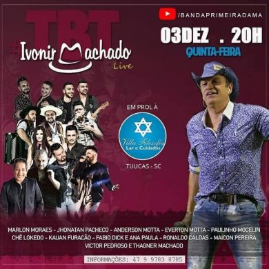 O cantor Ivonir Machado após sofrer um AVC, Acidente Vascular Cerebral, desde o ano de 2018 continua com seu tratamento de recuperação, já que o AVC deixou sequelas em Ivonir. Ele perdeu o que foi durante anos a sua principal ferramenta trabalho, a voz, e os movimentos do lado direito do corpo. Devido a sequelas foi preciso ter um acompanhamento diário, e assim a família optou em mantê-lo na Villa Filosofia Lar e Cuidados de Tijucas, onde recebe diariamente atenção e os cuidados necessários. Sem poder trabalhar a renda familiar do cantor despencou. Diante da dificuldade financeira a Villa Filosofia Lar optou por suspender o atendimento. Assim para que retome o pagamento mensal e garanta a permanência de Ivonir Machado no local, uma live beneficente será realizada para arrecadar os recursos. Ela ocorrerá na próxima semana, na quinta-feira (03), parceiros irão cantar os sucessos de Ivonir. Uma conta e um QR-Code estarão disponíveis para que as contribuições sejam enviadas.