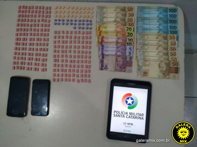 A guarnição se deslocou até o endereço e chegando no local visualizou um masculino na frente da residência, que ao perceber a PM tentou empreender fuga, sendo acompanhado e abordado. Após busca pessoal, nada de ilícito foi encontrado com ele, porém em revista no quarto do mesmo foi localizado no guarda-roupa mais 55 comprimidos e a quantia de R$800,00. Diante dos fatos foi dado voz de prisão aos mesmos e também foram encaminhados à delegacia de Polícia Civil de Itapema, juntamente com as drogas e os demais objetos aprendidos para os procedimentos cabíveis.
