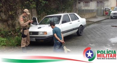 Na manhã de ontem, dia 24 de maio, a Policia Militar realizava rondas e abordagens no Bairro Perequê, nas proximidades da Rua Beija Flor, quando avistaram o condutor de um veículo em atitude suspeita.