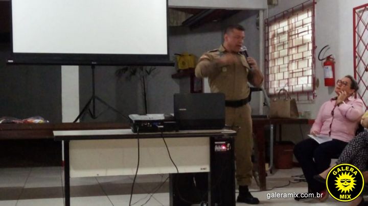 Major Éder fala sobre a importância do uso do uniforme, em reunião de pais e professores em escola de Tijucas
