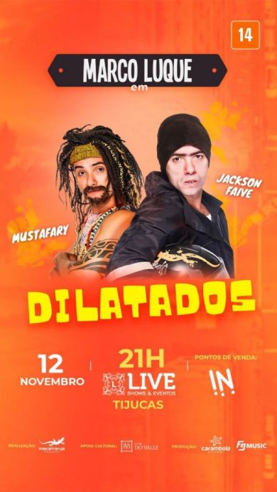O Ator , humorista e palhaço, Marco Luque traz “o sérumaninho Mustafary e o motoboy Jackson Faive, para trocar aquela ideia sobre tudo de mais dilatado que vem ocorrendo em nossa biosfera terrestre. Em “Dilatados”, Marco Luque conta as façanhas de Jackson Faive – o motoboy paulistano mais famoso do Brasil – Mustafáry – um vegetariano irônico e controverso, que prega a sustentabilidade do Planeta, diz amar a natureza e os animais (especialmente o serumaninho, cachorro que encontrou na praia). O universo destes personagens é certeza de diversão garantida. A versatilidade de Marco Luque, comprovada desde a bancada do CQC (TV Band) , Altas Horas , na Nova Escolinha do Professor Raimundo , Cinema, Mini-séries etc mostram outras peculiaridades do artista, com momentos inesquecíveis para o público. “Marco Luque em: Dilatados” tem 70 minutos de duração, produção de Macatranja Produções com criação e Direção de Luque e Guilherme Rocha.