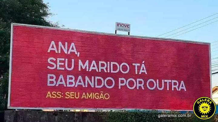 A frase “Ana, seu marido tá babando por outra. Ass: Seu Amigão” estampada em um outdoor no Centro de Brusque, chamou atenção de todos assim que foi colocada.
