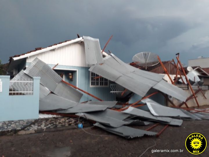 Um dos mais assustadores casos ocorreu na rua Araci Duarte Scherem no bairro Carmelo de Fora, onde pelo menos três residências ficaram parcialmente destruídas após parte da cobertura de um prédio se desprender com o vento e atingir as casas.