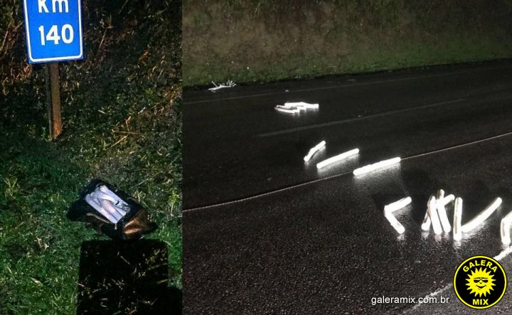 Ao abrir o zíper superior foi possível visualizar vários sacos (tipo bananas) com uma substância na cor branca semelhante a explosivo. De imediato foi se afastado da bolsa e por medidas de segurança a BR 101 ficou com o trânsito modificado, sendo apenas possível transitar por uma faixa.