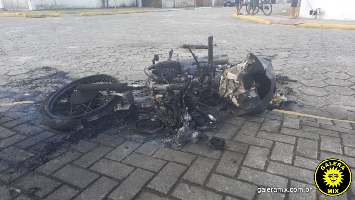 Uma moto ficou completamente destruída depois de pegar fogo na tarde desta quinta-feira, 1 de dezembro, em Tijucas. O condutor ficou ferido, mas foi tirado de perto antes das chamas se alastrarem.