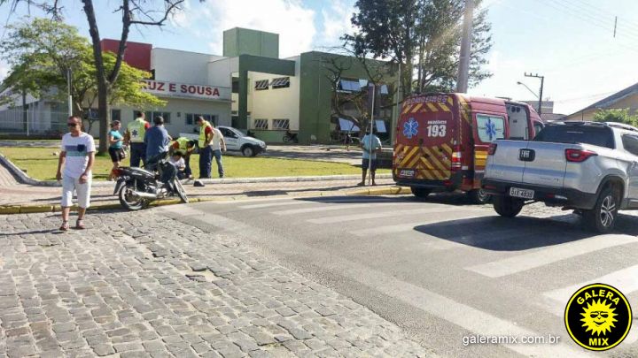 Na manhã desta segunda-feira (23), um motociclista precisou ser encaminhado ao Hospital São José após se envolver num acidente de trânsito nas proximidades do Colégio Cruz e Souza.