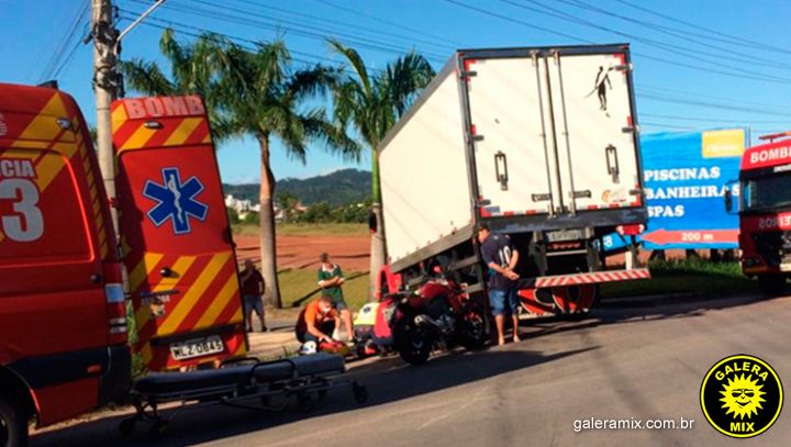 Na manhã deste sábado (23), um motociclista ficou gravemente ferido ao colidir em um caminhão na SC-410, em São João Batista.