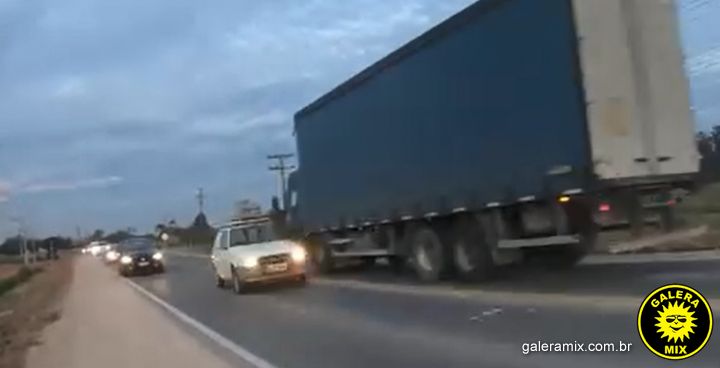 Nas cenas, é possível observar um veículo Fiat/Uno realizando uma ultrapassagem perigosa, mesmo com um caminhão trafegando em alta velocidade na pista contrária. O flagrante ocorreu em um trecho da rodovia onde a sinalização indica a proibição de ultrapassagem.
