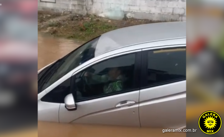 Em Camboriú, uma motorista enfrenta momentos de tensão ao ter seu carro levado pela correnteza, após perder o controle do veículo devido às chuvas na tarde de quarta-feira (4).