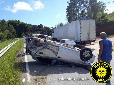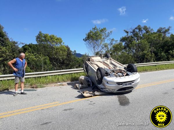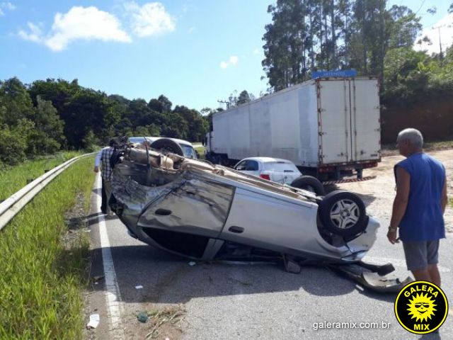 De acordo com informações um veículo GM/Onix com placas de Brusque realizava uma ultrapassagem, quando acabou colidindo na lateral de uma Caçamba e de uma carreta. Com a força do impacto o carro rodou na pista e capotou. Por sorte o condutor do Onix teve apenas ferimentos leves e recusou atendimento do Corpo de Bombeiros.