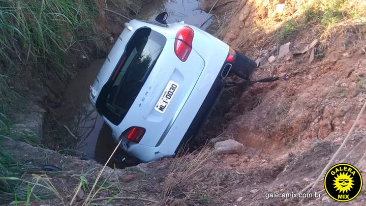 Um motorista escapou ileso depois que seu carro caiu em uma vala em uma estrada paralela à SC-410, em Canelinha, próximo ao portal da cidade.