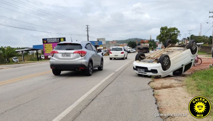 Um motorista de um automóvel Fiat/Uno, perdeu o controle da direção do veículo e capotou em Canelinha. O acidente ocorreu por volta das 14h30min desta segunda-feira (02), na SC-410.
