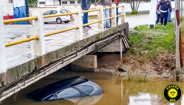 Motorista tenta estacionar em barranco e cai em rio na divisa de Tijucas e Porto Belo