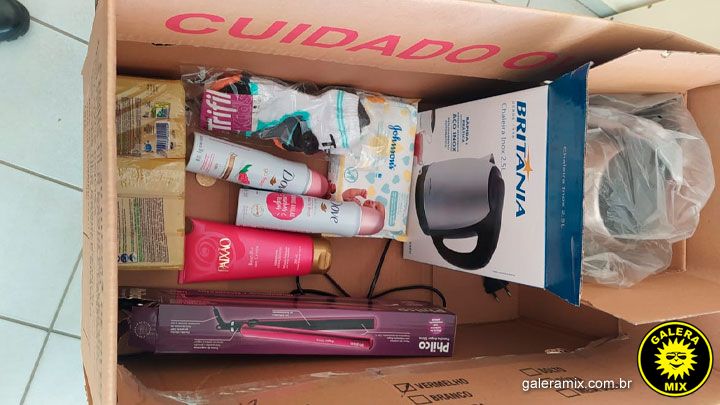 A Policia Militar foi acionada para atender a ocorrência e ao chegar no local o furto foi confirmado. Com a feminina diversos produtos entre eles desodorantes, meia infantil, prancha de cabelo, chaleira elétrica, toalha umedecida e sabão em pó foram localizados. Com ela também foi encontrado uma quantia de R$ 1050 em espécie.