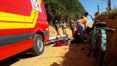 Nna tarde deste domingo (26), uma mulher ficou ferida após sofrer uma queda de bicicleta, quando descia um morro, no bairro Moura, em Canelinha.