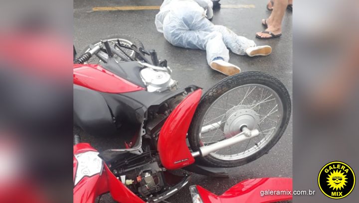 Com impacto da colisão a motociclista foi arremessada ao chão sofrendo ferimentos pelo corpo.