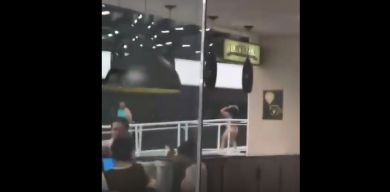 A testemunha disse, ainda, que a mulher beijou funcionários da loja na boca. A mulher "desfilou" e arrastou as cadeiras da praça de alimentação da loja.