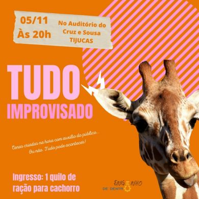 Prepare-se para RIR... Das cenas hilárias ou das trapalhadas que vão acontecer. TUDO IMPROVISADO encerra o ano do Engenho com diversos exercícios da rotina teatral, onde o público colabora com temas e frases para as cenas sem nenhum roteiro pré estabelecido. É IMPROVISO MESMO!