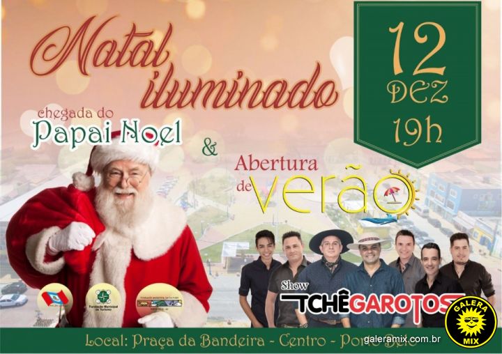 O show com a banda Tchê Garotos terá início após a chegada do Papel Noel.