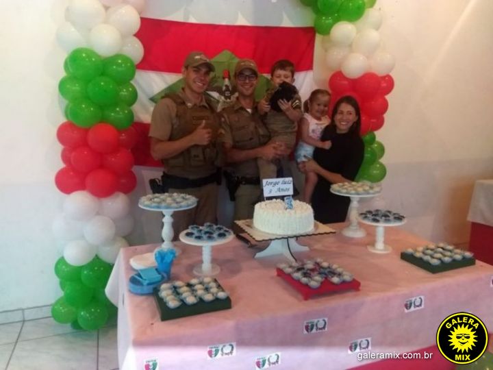 Um pequeno morador de Nova Trento teve uma grande surpresa no dia que completou três anos de idade. Após contato do pai do menino Jorge Luiz, os Policiais Militares surpreenderam a criança, inclusive cantando o ‘Parabéns a Você”. A festa teve a PM como inspiração.