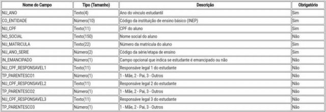 Manual do Sistema Educacional Brasileiro indica os campos as instituições precisam preencher para cadastrar os estudantes — Foto: Reprodução/Inep