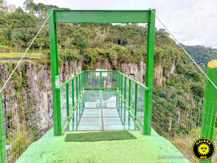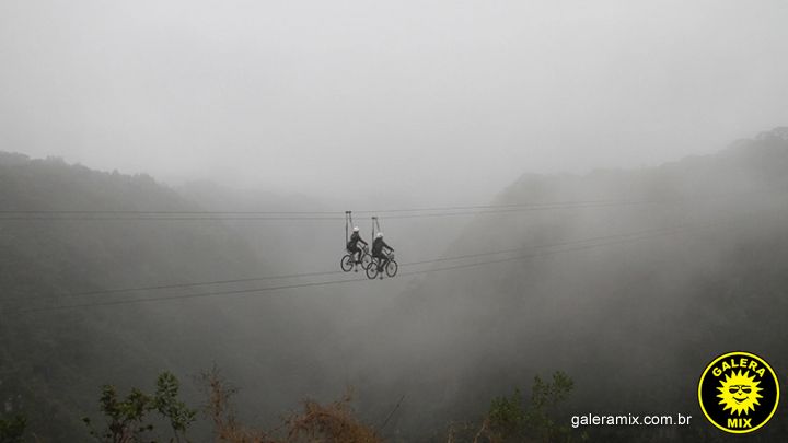 Além da passarela com chão de vidro, há outras opções para os corajosos curtirem no Eco Parque Cachoeira Papuã. Uma delas é a Sky Bike, aventura na qual você atravessa o precipício entre as montanhas pelas alturas, em uma bicicleta.