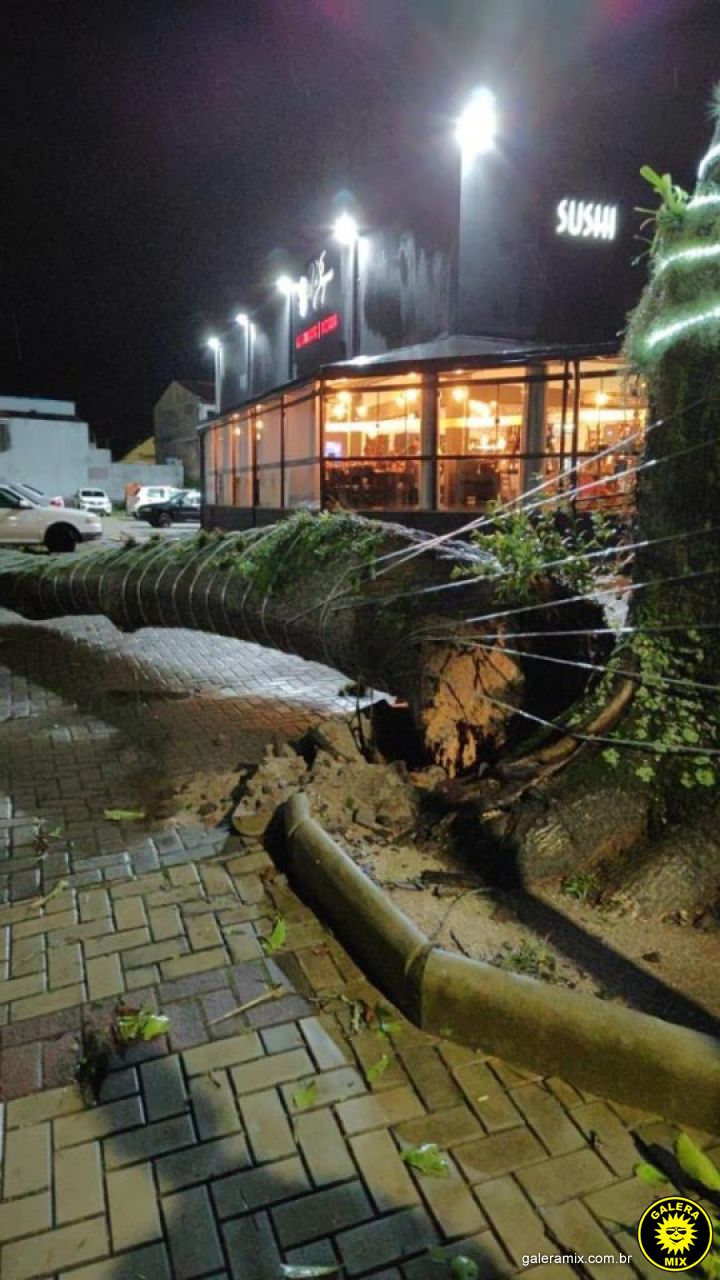Parte de uma árvore antiga e de grande porte, situada em frente ao restaurante Vô Jaques, na Rua Coronel Buchelle, desabou com a tempestade desta segunda-feira, 29 de janeiro. Um galho atingiu dois veículos estacionados nas proximidades.