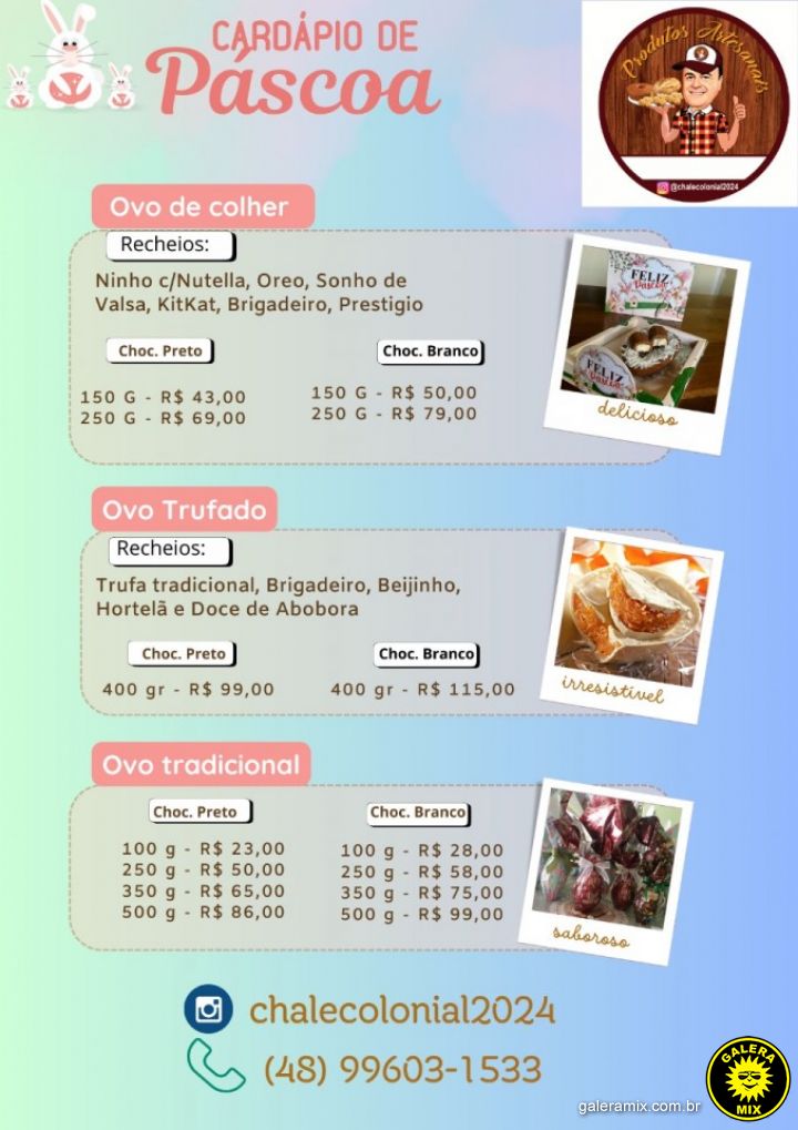 Em Tijucas você já pode adquirir seus ovos de chocolate caseiro: tradicional, de colher ou com casca rechehada. Todos produzidos com chocolates nobres e muito amor.