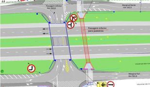 Já o retorno da marginal leste para a marginal oeste rumo a saída para o sentido sul da BR, continua sendo feito em sentido duplo de circulação.