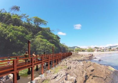 A passarela terá uma extensão total de 800 metros e irá percorrer a beira da mata em meio às pedras do costão. O projeto vai selecionar materiais para o mínimo impacto ao meio ambiente. Tudo com iluminação e segurança garantidas já que propicia a acessibilidade para todos desfrutarem da bela vista da orla. E para que os pescadores artesanais tenham um novo ponto de observação na época da pesca da tainha. A previsão de entrega é de 10 meses.