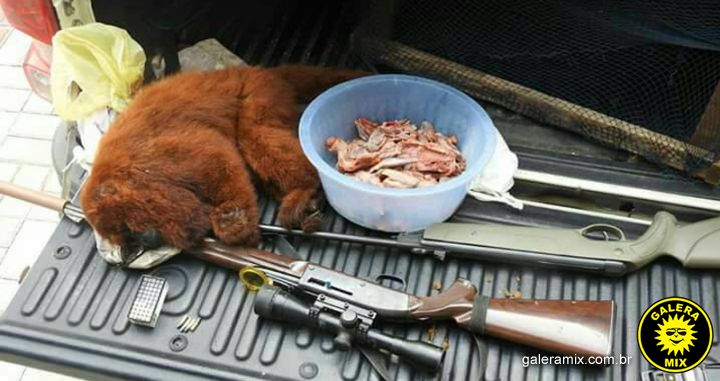 Eles estavam de posse de um rifle calibre 22, carregado com quatro munições, luneta e silenciador. Em uma mochila, foi encontrado um macaco bugio abatido e mais 18 munições.