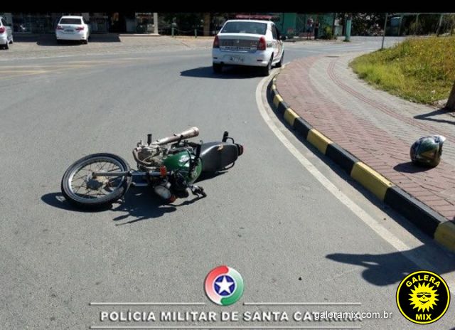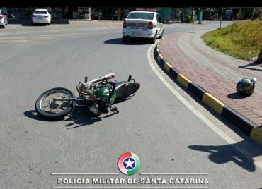 Após desobedecer à ordem de parada dada pelos policiais o motorista da moto tentou se evadir, colocando a vida de pessoas em perigo, vindo a cair próximo da rótula do posto de combustível.