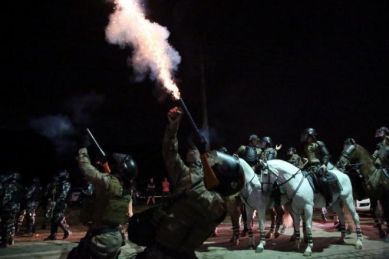 O grupo dizia que só iria liberar a estrada às 22h, quando fechariam as 24h da decisão judicial. No entanto, por volta das 19h, policiais militares dispararam bombas de gás lacrimogêneo. Uma névoa tóxica se formou no local e dispersou os manifestantes. Alguns resistiram e chegaram a colocar tubos de concreto na pista. A PM avançou com a cavalaria e alguns tiros de bala de borracha foram disparados. Pelo menos um homem teve ferimentos no rosto e na perna.