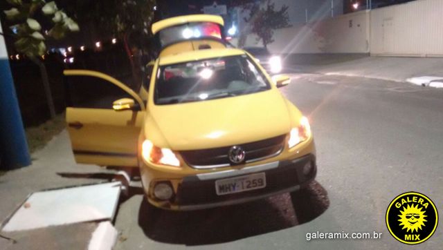 Eles fugiram levando ainda a chave de um veículo e o celular de um dos clientes que estava no local. Um dos funcionários flagrou eles se evadindo em um VW/Gol amarelo, onde um terceiro indivíduo aguardava.
